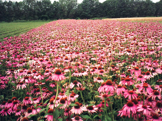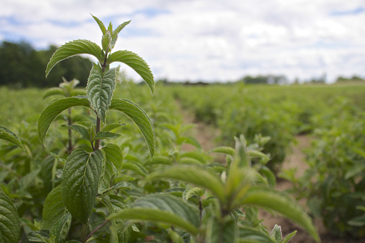 Auf unseren Feldern wachsen unter anderem Sonnenhut, Pfefferminze, Spitzwegerich, Artischocken, Baldrian, Angelika, grüner Hafer, Melisse, Kapuzinerkresse, Goldrute, Dill, Petersilie, und Liebstöckel.